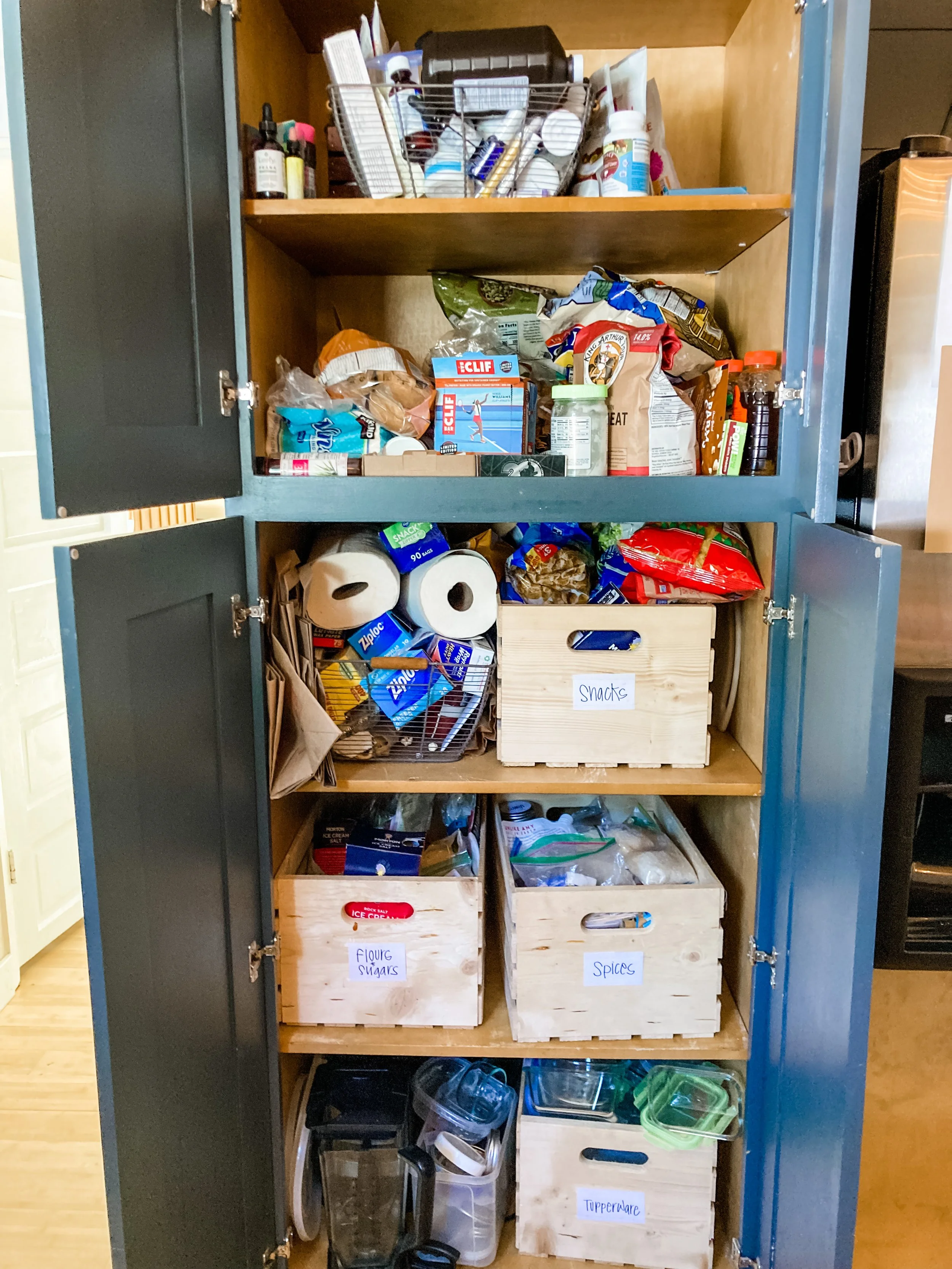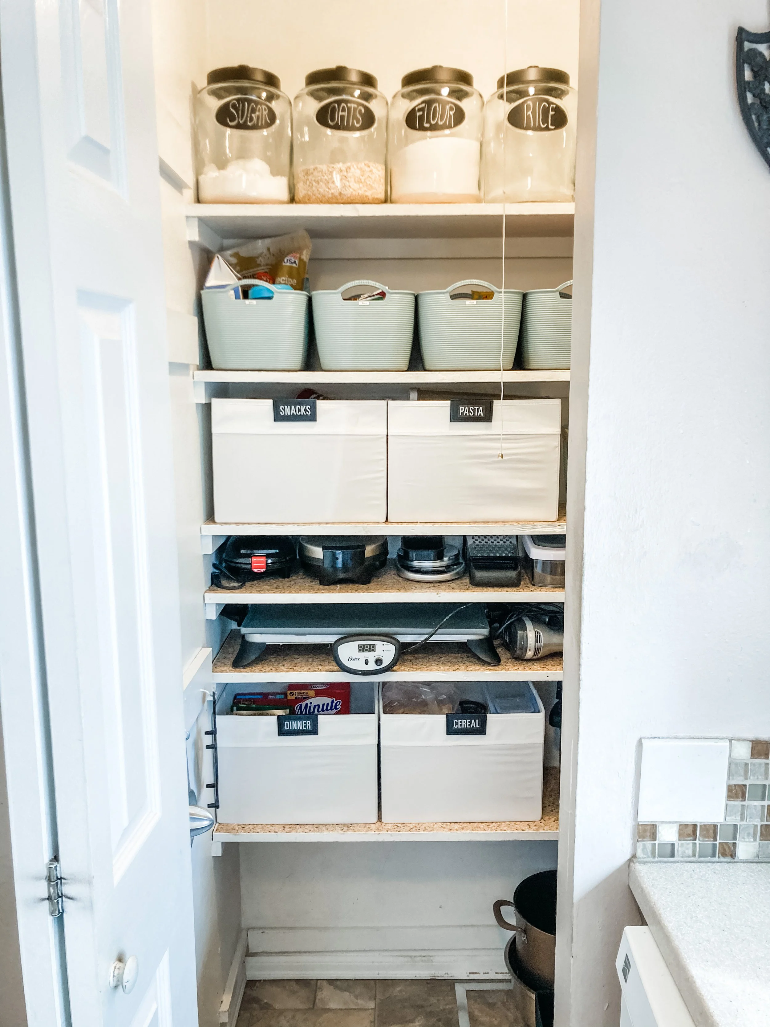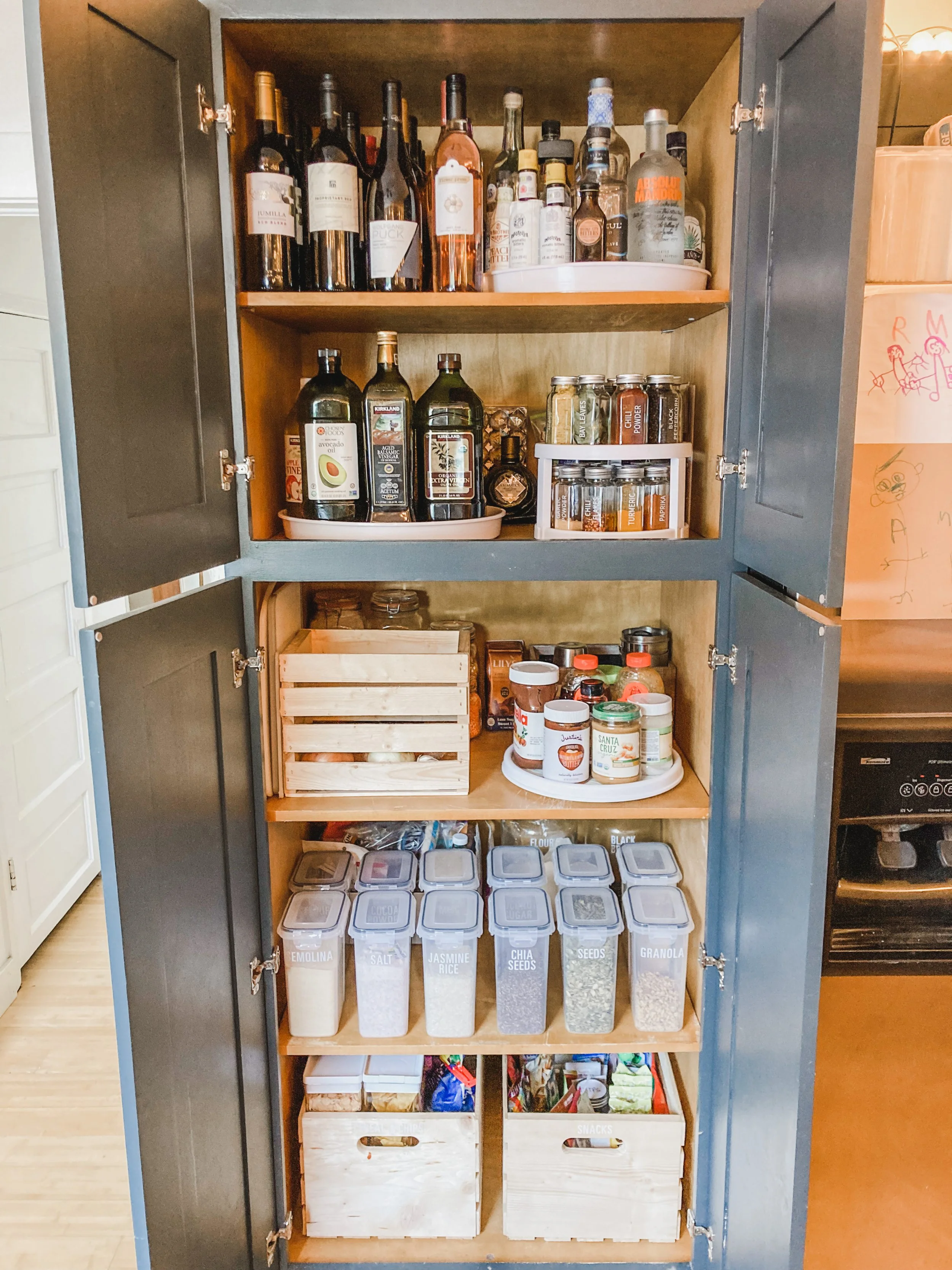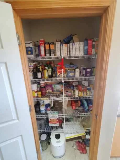 A pantry is accessed multiple times a day by multiple members of a household so it is a key place to invest in functional organization. A well organized pantry saves you time, money, and headaches! And dare I say it…brings joy! Groceries are fast and easy to put away, you can easily see what you have and don’t accidentally buy duplicates, and proper labeling means everybody can help keep the system tidy. Check out some pantry photos below. Left is before, right is after.
