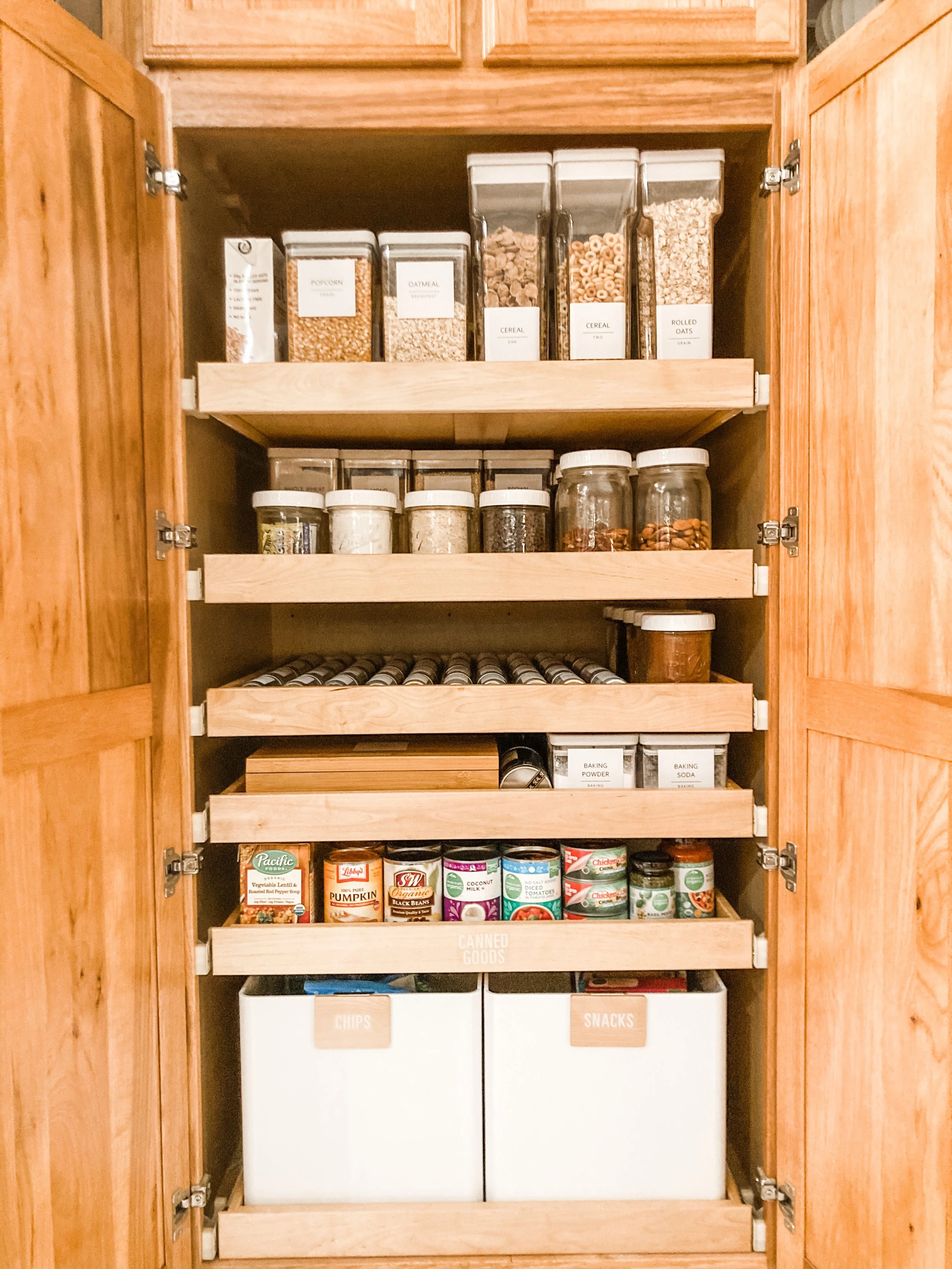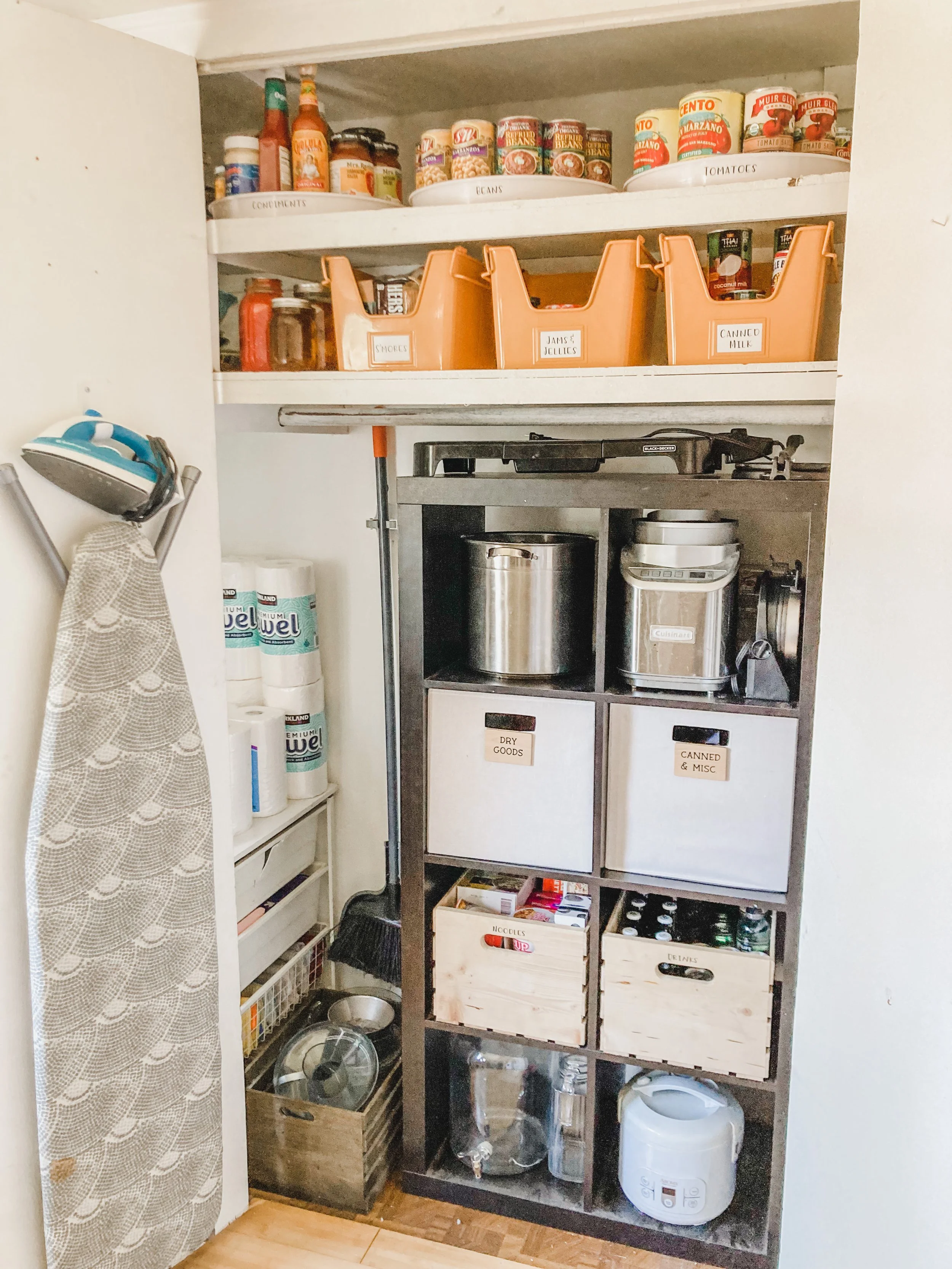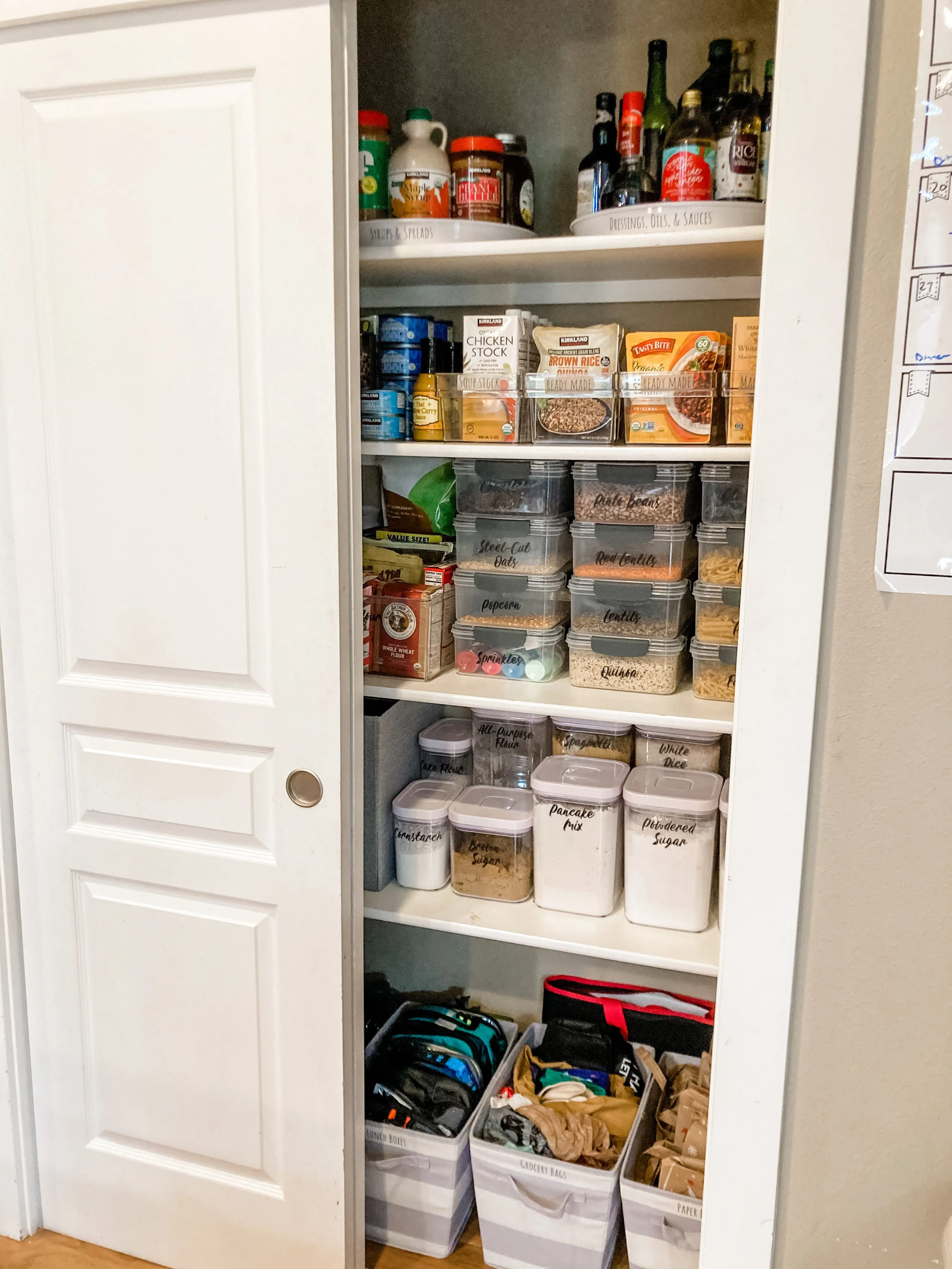 A pantry is accessed multiple times a day by multiple members of a household so it is a key place to invest in functional organization. A well organized pantry saves you time, money, and headaches! And dare I say it…brings joy! Groceries are fast and easy to put away, you can easily see what you have and don’t accidentally buy duplicates, and proper labeling means everybody can help keep the system tidy. Check out some pantry photos below. Left is before, right is after.